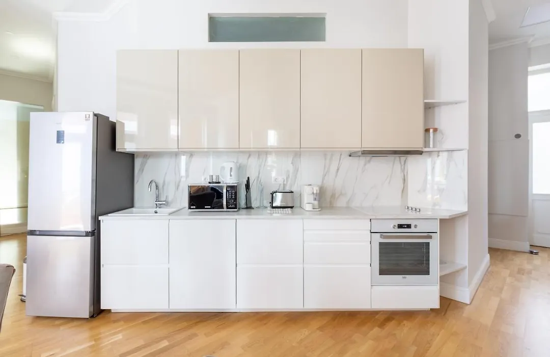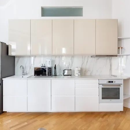Az ön kényelmét szolgálja az apartmanban biztosított felszerelt konyha, melyben kávé/tea készítő és hűtő biztosított. Az apartman továbbá körülbelül 350 méterre található az Akacfa utca buszmegállótól és pár lépésnyire a Bajcsy-Zsilinszky út metróállomástól.